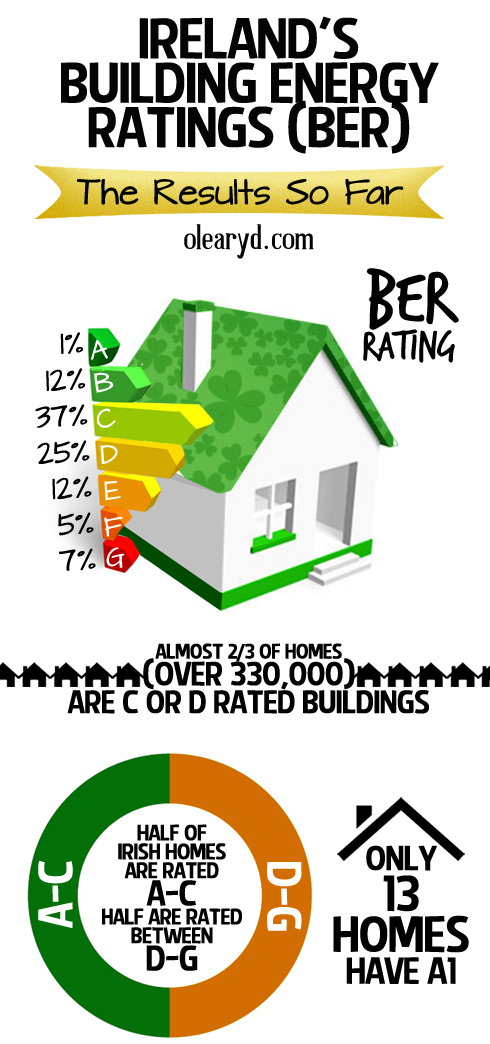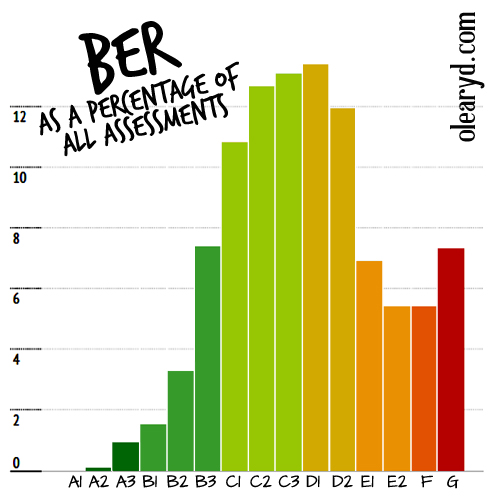 Not a very pretty sight is it? It looks a bit like the results for honours maths in the Leaving Certificate over the last few years. A few high achievers, a few more doing OK, but a lot struggling to get into the good grades. The fact that only 5,000 homes achieved an A rating was the stat that jumped off the page. Within that cohort, only thirteen (yes, 13!) had achieved an A1 rating. In Ireland, we probably have as many Eurovision winners as we have A1 rated homes. I could be wrong about the Eurovision, I stopped counting when we chose a turkey as our representative.